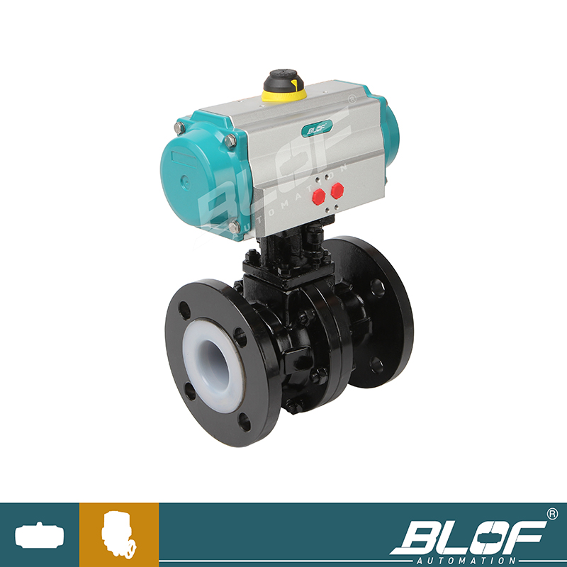 公称通径DN(mm) 15~300 公称压力(MPa) PN1.0、1.6 MPa 阀体形式 两段式阀体(浮动球体、固定球体) 连接形式 法兰式 阀芯形式 "O"型球形阀芯 密封填料 聚四氟乙烯(PTFE) 流量特性 近似快开型 动作范围 0~90° 泄露量Q 软密封:零泄漏 适用温度 PTFE≤180℃ 基本误差 带定位器:小于全行程的±2% 死区 带定位器:小于全行程的2% 可调范围 250:1 配置执行机构 BLR BLP系列单双作用气动执行器 控制方式 开关两位控制、4-20mA模拟量控制 气动衬氟球阀 执行器参数